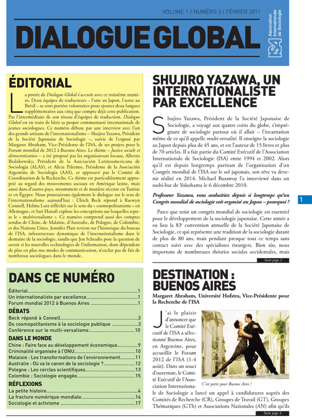 A third related priority is to establish more opportunities for junior scholars to participate in ISA activities where they can meet and collaborate with senior international scholars. We need to expand such spaces for junior sociologists and I hope the ISA Forum 2012 will create a session specifically dedicated to bringing together junior and senior scholars.