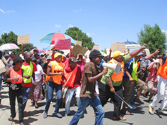 Protests today are also often linked to differences within the local structures of the ANC and its aligned formations. This has seen the mobilization of groups of ANC members against their own elected leaders in municipalities. Sometimes these result from battles lost within the party or the state, and sometimes to expose and question the very forms of state patronage and access to channels for self-enrichment (through tenders, access to jobs and funding). As splits from within the ANC fold play themselves out, it will be interesting to see how new political players like the Economic Freedom Fighters (EFF) and the United Front (launched by the National Union of Metalworkers together with other community and civil society formations) will relate to such local struggles of the poor.